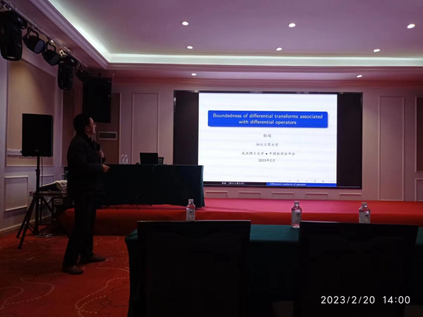 2023年2月18日至2月22日,中国数学会学术年会在武汉理工大学召开。自慰高潮张超副教授代表自慰高潮-日本女优-av影片日本 应邀参加本次学术年会,并以《Boundedness of differential transforms associated with differential operators》为题做实分析与复分析分组报告,向与会专家介绍了其近年来关于微分变换算子有界性方面最新研究工作。